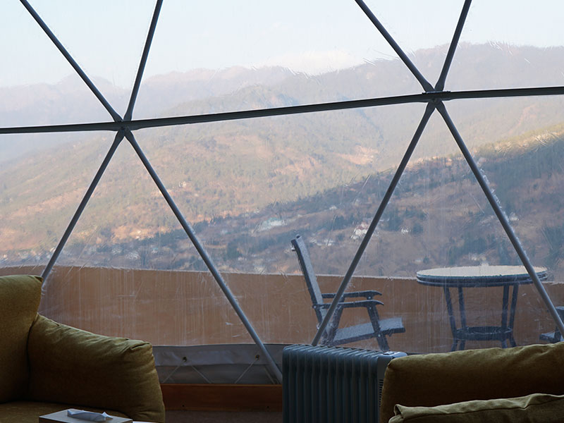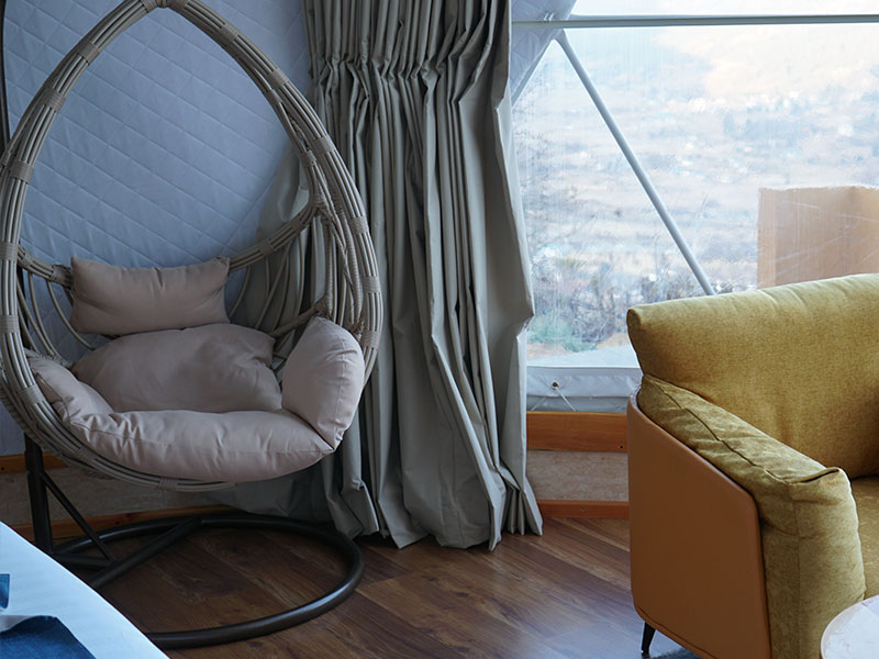 Hilltop View Domes provide expansive views of the valley, mountains, and open sky from the highest point on the site. There aren't many domes, so the experience is intimate and leisurely. Here, areas remain serene and uncrowded, attention is given thoughtfully without interference, and the pace is determined by nature rather than a set timetable. A unique viewpoint characterized by comfort, quiet, and altitude.